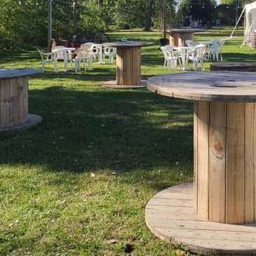 Font office de tables bistros sur la terrasse (nous en incluons de 5 à 7, elles ont des diamètres et hauteurs variées)