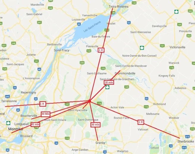 À seulement 45 minutes de Montréal et 1h de Trois-Rivières, Sherbrooke et deTerrebonne